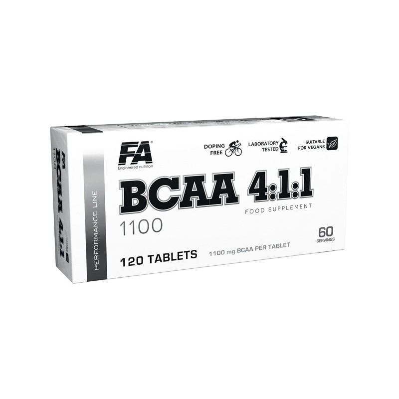 BCAA 4: 1: 1 představuje recepturu s vysokou koncentrací účinných látek, v tomto případě mikronizovaných aminokyselin s rozvětveným postranním řetězcem – BCAA - ve formě tablet. Každá tableta obsahuje 1100 mg BCAA, které jsou obsaženy v příznivém poměru 4:1:1, čímž poskytují až 733 mg L-leucinu, který je nejžádanější aminokyselinou ze všech přítomných. Výrobek byl také obohacen o vitamín B6, který plní řadu funkcí, pro sportovce nezbytných. Mimo jiné, přispívá ke snížení únavy a vyčerpání, podporuje energetické procesy v těle, pomáhá při fungování imunitního systému a pomáhá udržovat správný metabolismus proteinů a glykogenu.