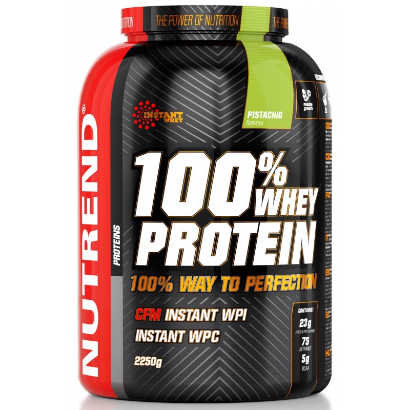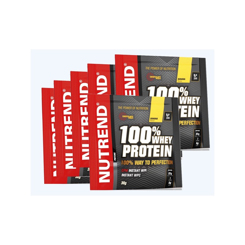 100% WHEY PROTEIN představuje spojení prvotřídních surovin ve vyvážené kombinaci a nových výrobních technologií. Díky tomu je v tomto špičkovém produktu zachováno ideální aminokyselinové spektrum s vysokou biologickou hodnotou. Základ produktu tvoří prémiový ultra-filtrovaný koncentrát mléčné syrovátky (WPC) a nejčistější forma izolátu syrovátkové bílkoviny (WPI) vyrobená metodou Cross-Flow Microfiltration (CFM). Metoda CFM zajišťuje minimum denaturovaných bílkovin a zachovává bílkovině všechny biologicky účinné frakce. Spojením nejlepších surovin v tomto produktu získáte pro své tělo 23 gramů prvotřídní bílkoviny z každé dávky a více než 5 g větvených aminokyselin (BCAA). Mimořádná rozmanitost příchutí je dalším benefitem tohoto produktu. 100% WHEY PROTEIN se velmi snadno rozpouští a k jeho rozmíchání stačí použít šejkr NUTREND. Dostatečný příjem kvalitní bílkoviny přispívá k obnově svalové tkáně a k svalovému růstu.
